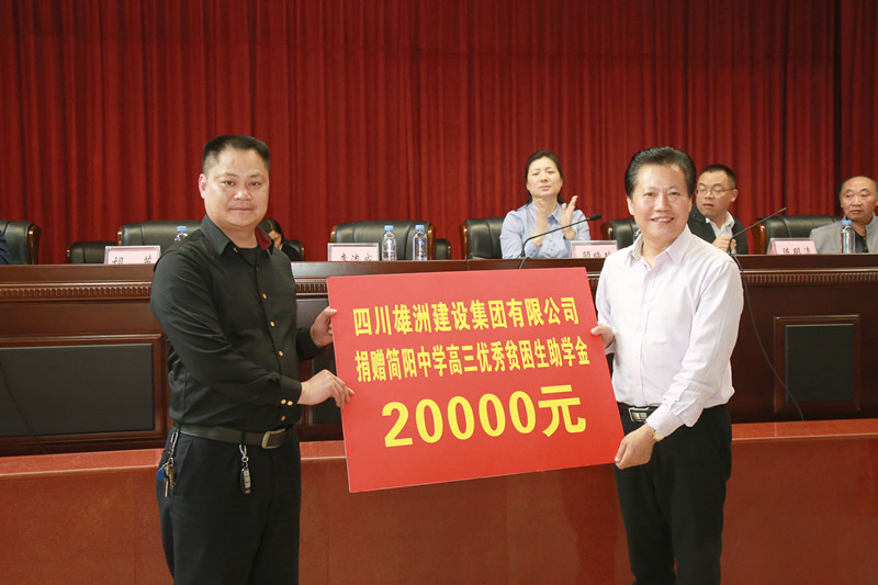 【概要描述】2017年雄洲集團董事長李方明同志捐贈、慰問貧困學(xué)子2018年四川雄洲建設(shè)集團有限公司幫扶共建為高考加油·為夢想助力2018年3月15日,簡陽市工商聯(lián)(商會)組織開展了以“為高考加油·為夢想助力”為主題的“愛心企業(yè)簡中行”、“愛心企業(yè)陽安行”公益活動,共資助110名高三優(yōu)秀貧困生,捐資共計11萬元。市委常委、統(tǒng)戰(zhàn)部部長,市總工會主席顧曉玲,市政協(xié)副主席、市工商聯(lián)主席、市商會會長陳明清出席活動。四川誠卓房地產(chǎn)有限公司、四川雄洲建設(shè)集團有限公司、四川簡陽銀河房地產(chǎn)開發(fā)有限公司、四川帝王潔具股份有限公司參與了此次活動。市商會副會長、四川雄洲建設(shè)集團有限公司總經(jīng)理李流成代表捐助企業(yè)發(fā)言。他表示,企業(yè)在發(fā)展過程中都得到了市委、市政府以及社會各界的關(guān)心和支持,企業(yè)也一直以積極的行動回饋社會。以后將積極倡導(dǎo)有更多的工商界和社會各界人士投身到各項社會公益事業(yè)中來,以感恩的心回饋社會,譜寫出實現(xiàn)共同富裕的華彩樂章。陳明清主席介紹了活動背景,對參與愛心助學(xué)的企業(yè)表達了誠摯的謝意,并勉勵同學(xué)們要以大無畏的勇氣接受高考這場挑戰(zhàn),攻堅克難,以優(yōu)異的成績回饋社會各界的關(guān)愛。顧曉玲常委對